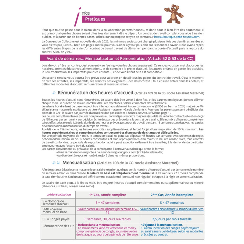 L'agenda des boutchoux permet aux parents de suivre la garde de 2 enfants chez la nounou (heures, repas, indemnités).